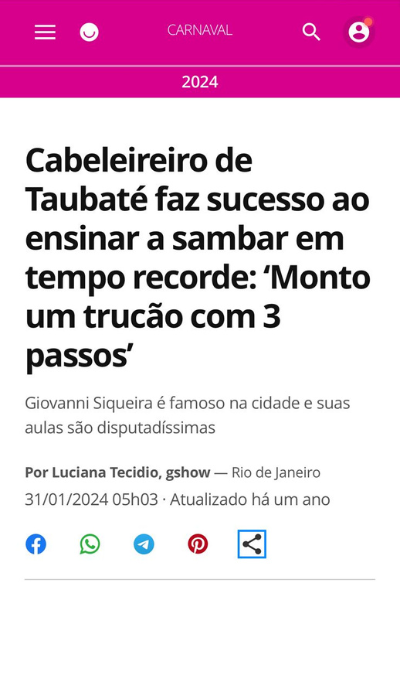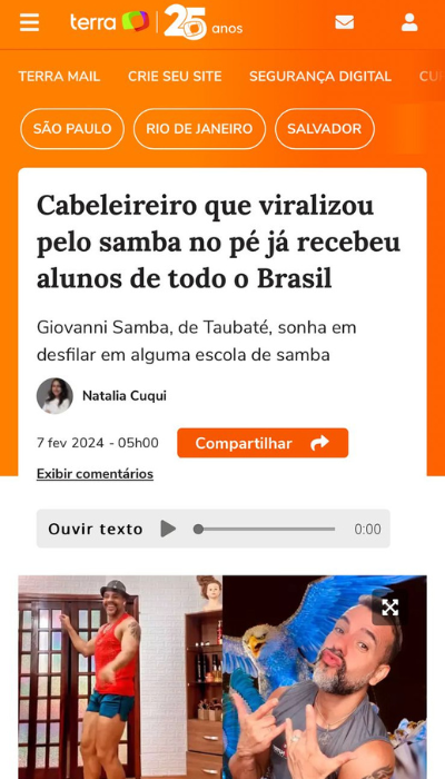 Meu maior sonho? Desfilar como malandro em uma escola de samba: de branco, com chapéu na cabeça, sorriso aberto e o coração dançando no peito — porque o samba não é só um ritmo. É uma maneira de ser, de sentir, de viver.